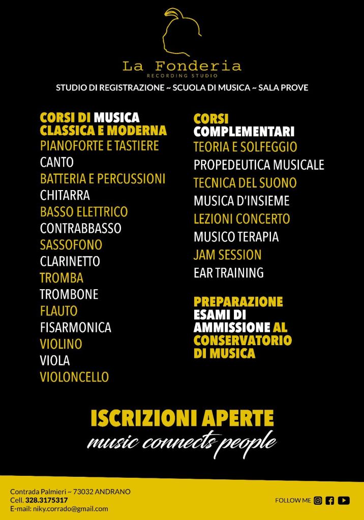 Nel cuore del Salento, tra ulivi e vento, La Fonderia situata ad Andrano (LE) è più di uno studio di registrazione: è uno spazio creativo dove la musica prende vita. Nato per offrire ai musicisti, emergenti e affermati, un ambiente professionale e libero, permette di sperimentare, registrare con qualità e coltivare progetti indipendenti.